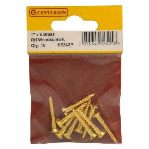 1″ x 6 Slotted Raised Head Woodscrew – Brass – (Pack of 10)