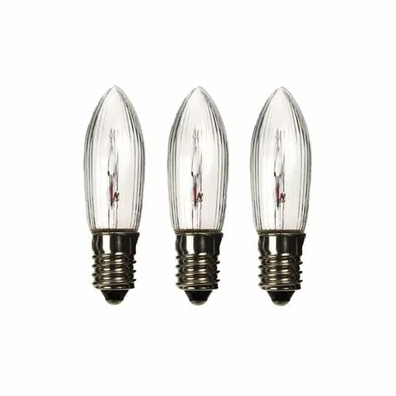 Refresh your Christmas bridge arch or festive lighting display with this premium set of three candle-shaped replacement bulbs. Designed with ribbed glass for a warm, classic glow, these bulbs bring charm and elegance to any holiday décor.