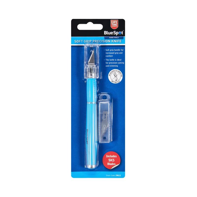 The blue spot soft grip precision knife set comes with the added bonus of five blades in a storage box to get you started.