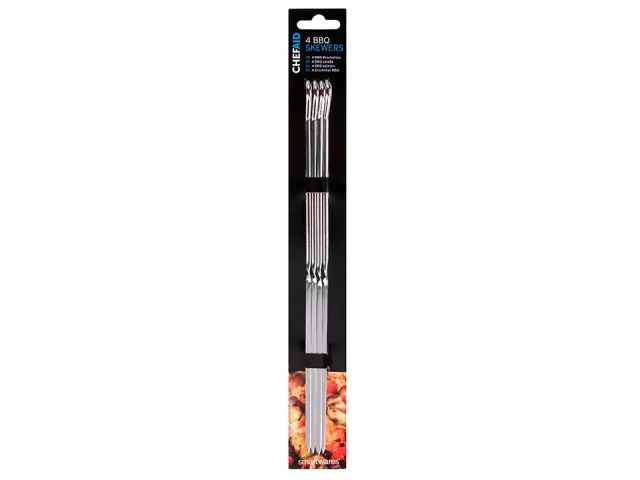 Chef Aid Metal Skewers x4 SKU: 1001191 Category: Cookware £2.49 - incl. VAT 3 in stock Chef Aid Metal Skewers x4 quantity Add to basket Description 25.5cm / 10″