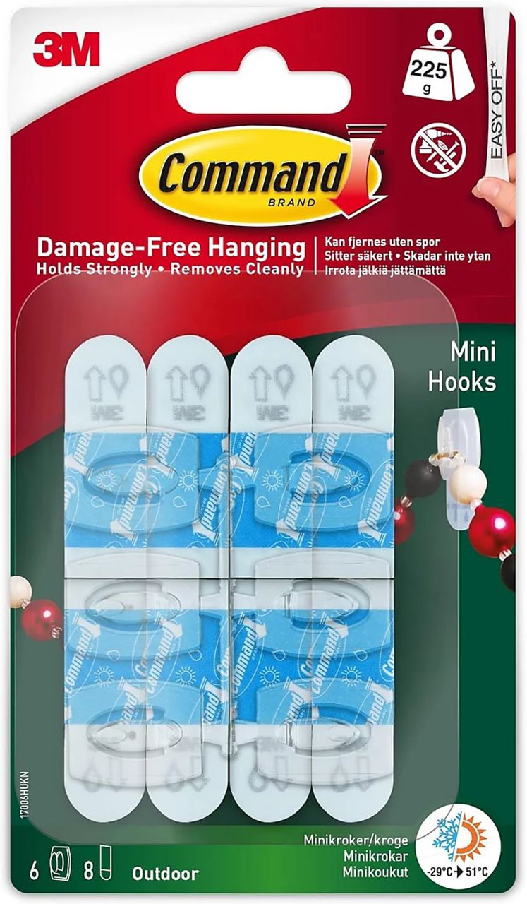 Hang bunting, decorations and other light items throughout the year with CommandT Outdoor Mini Hooks. These all-season, all-weather strips hold strongly to a variety of surfaces including solid, hollow and painted walls, as well as other materials including wood, tile, metal and glass. They’re easy to apply and remove, leaving no holes, marks or sticky residue. Our mini hooks are ideal both indoors and outdoors throughout the year, allowing you to hang items without risking damage to the surfaces underneath.