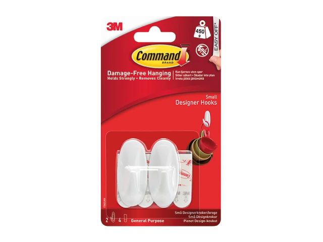 Command Hooks allow damage free hanging with an exceptionally strong hold. They’re easy to apply and easy to remove- leaving no marks. They work on a variety of surfaces to allow you the hanging space that you require. Command hooks are available in three different packs.