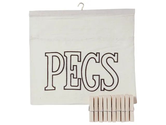Cotton Peg Bag SKU: 1001427 Category: Laundry £3.99 6 in stock Cotton Peg Bag quantity Add to basket Description Store your pegs in this cotton peg bag to keep them handy and secure. The bag features a hook to hang on the washing line so you will always know where to find them.
