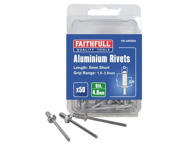 Faithfull Aluminium Rivets 4.8 x 8mm Short x 50