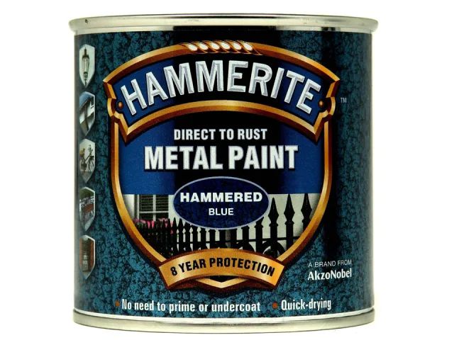 Hammerite Direct To Rust Metal Paint can be painted directly onto rusty surfaces, and thanks to its special 3 in 1 formula there is no need to use a primer or undercoat – saving you precious time! Touch dry in an hour, Hammerite gives long lasting protection and is suitable for use on a wide range of exterior metal including gates, railings, drainpipes, guttering and garden furniture