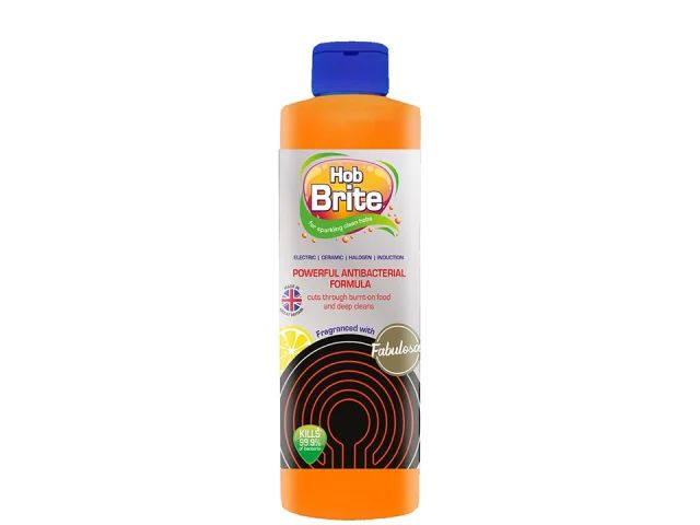 For sparkling clean hobs, use Hob Brite. It easily removes tough burnt on food and protects from future staining. It can be used on electric, ceramic, halogen & induction hobs